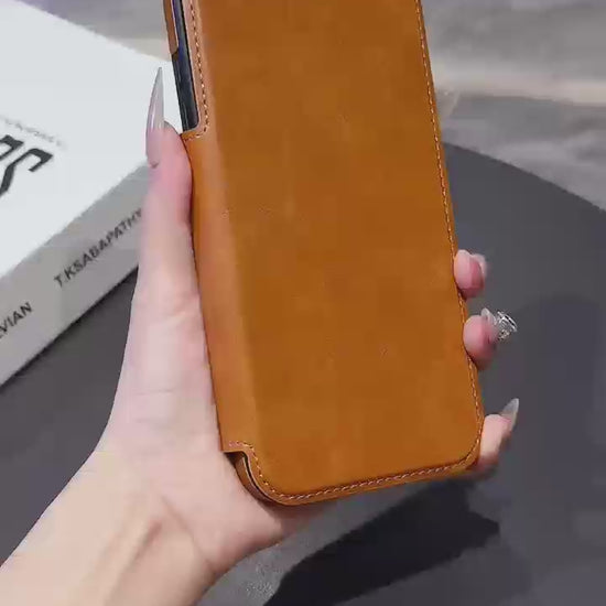 Luxuriöse iPhone-Hülle aus Leder mit Magnetverschluss und MagSafe-Kompatibilität – Eleganz, Schutz und ultimativer Komfort