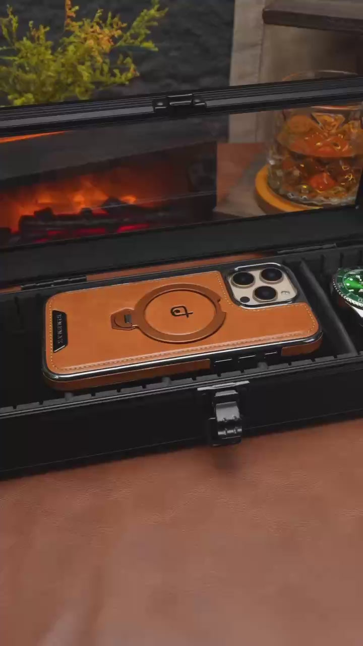 Luxuriöse MagSafe iPhone-Hülle aus Leder mit integriertem Ständer – für alle, die echte Qualität schätzen